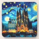 This elegant design is a depiction of the Sagrada Familia in Barcelona in the style of Vincent Van Gogh's Starry Night.