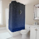 Shower curtain with an image of a starry night sky, in a gradient of deep midnight blue to black, with a crescent moon