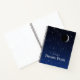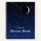 Dream journal in an image of a starry night sky, in a gradient of deep midnight blue to black, with a crescent moon. and personalised text