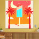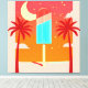 Whimsical summer night with starry sky, an ice cream bar, and surrounding palm trees. A dreamy tropical escape awaits.