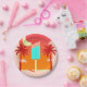 Whimsical summer night with starry sky, an ice cream bar, and surrounding palm trees. A dreamy tropical escape awaits.
