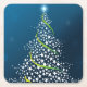 Starry Swirling Christmas Tree on Blue Square Paper Coaster