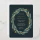 Invite friends or colleagues to celebrate the season with these elegant holiday cocktail party invitations. Design features your event details in classic white lettering on a soft hunter green background, encircled by a wreath of green watercolor laurel leaves accented with gold foil stars. Customise this elegant invitation with your event type, making it perfect for Christmas parties, holiday soirees, corporate events, holiday cocktail parties and more.