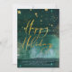 Starry Winter Night Happy Holidays Green Gold Holiday Card