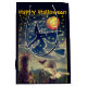 This Halloween Gift Bag shows a witch outlined in stars flying across the Halloween night sky over fields of pumpkins, with black cat and owl. The design is from a 1913 Halloween card.