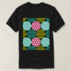 Multicolored stars and circles dance on a black canvas in this vibrant pattern.