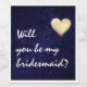 A heart-shaped moon in an evening sky filled with stars creates a pretty "be my bridesmaid" design.