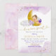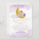 Stars and Moon Lilac Angel Girl Blonde Baby Shower Invitation