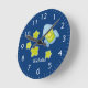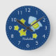 Cute, striped green stars and rocket with light blue and green. Name template underneath clock hands, but can easily be moved above hands by clicking on the customise further link. This clock is on a blue background, which can also be changed to match your decor.