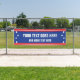 Stars and stripes red, white, and blue design for July 4 parade or greeting. Edit the text to add your organisation or business name or other message. This can be used as a banner to carry in a Fourth of July parade or to hang for an event. Blue background with red and white stripes and white stars border gives a patriotic American celebration design to your message.