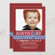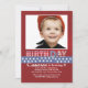 A delightful invitation with a patriotic theme. The bold red background has a blue, star-spangled band and custom "BIRTH DAY" wording. Just add your favourite photo to make it yours! (FP)