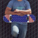 American flag themed design, complete with red and white stripes along with a blue background and white stars.