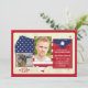 Welcome your hero home with this beautiful, patriotic, photo invitation. The bold red, cream and blue colours feature two photo windows, a map of the U.S. in flag form and a decorative panel for your personalisation as well as a USA logo. .