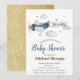 Stars,Clouds,Aeroplane Gold Glitter Baby Shower Invitation