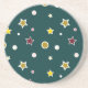 Elegant seamless Christmas pattern, colourful stars and snowflakes on dark green background.
