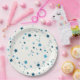 Stars in various sizes in multiple shades of blue on a white background makes for fun disposable paper plates. These plates can be used for adult or children's parties, boys or girls. This design is also sold on paper coasters and napkins as well.