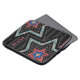 Incredible laptop sleeve is big enough to hold most smart-phones PLUS credit cards, ID, cash, coins & more - while the clip on feature leaves your hands free and your shoulder unburdened. Featuring a beautiful original digital painting by Leslie Sigal Javorek, of staggered Stars of David made of multi-coloured (mostly teal & rose) strips of different patterns on top of a subtle black-on-black horizontal stripe. 2 custom text field for your name or ?