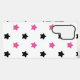 Do you like cute phone cases? This phone case features a pattern of pink and black stars on a white background.