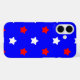 Do you like star theme phone cases? This phone case has a pattern of red and white stars on a blue background.