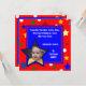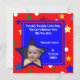 This bright and colourful invitation is perfect for your childs next birthday party! Design features a bright red background with stars in various sizes and shades of red, blue, green and yellow. There are also white polka dots. In the centre is a bright blue square with red trim. The text in white font can all be customised to suit your needs. There is a star in the bottom left hand corner for your child's photo. The star photo area has dark blue trim. The reverse side of the invitation has the same red background with stars pattern. There is a solid bright blue area for text in white font. Again, all of the text can be customised by you! These Stars Primary Colours Children's Photo Birthday Invitations are perfect for baby's first birthday or for preschool age children.