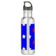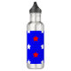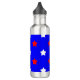Do you like patriotic theme water bottles? This water bottle features a pattern of red and white stars on a blue background.