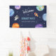 Welcome your little birthday guests with this cute customisable solar system kids birthday banner featuring watercolor illustrations of the galaxy, stars, planets, a rocket ship and, an astronaut. Perfect for children, who love a blast of an outer space adventure on their birthday. Personalise it with the special boy's or girl's name and utilise the editing tool for any additional adjustments to the font size and placement. Feel free to reach out to us on Zazzle if you need assistance with customisation.