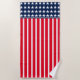 This beach towel is perfect for celebrating the Fourth of July with, shown in a festive patriotic stars and stripes flag print design.