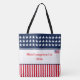 This tote bag is perfect for celebrating the Fourth of July and throughout the summer, shown with a fun patriotic stars and stripes flag print design. Personalise the text to your own.