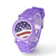 Show your patriotism with your watch with this illustration of stars and stripes in red white and blue representing the American flag.