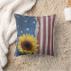 Stars & Stripes Patriotic Pillow with bright sunflower on front side. Reverse side just has the stars and stripes flag design. Can be customised to add some text.