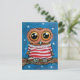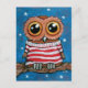 A wide eyed owl wearing a red and white striped shirt is surrounded by a dark blue starry sky. A fun whimsical postcard with a patriotic feel! Created from an original painting. Copyright © 2010 Lisa Marie Robinson All rights reserved. It is illegal to use or duplicate this, or any of our images, without written permission.