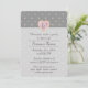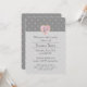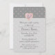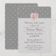 This invitation features pale pink hearts that form a polka dot pattern on a pleasant grey background. Hiding inside some of the hearts is a gold star with an emulated metallic shine, creating a playful and cute design. A pink heart holds a monogram set above a lighter section on the lower portion of the card where you can find sample text that can be customised to create a personalised invite for your event.
