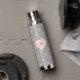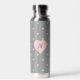 Pale pink hearts form a polka dot pattern on a pleasant grey background. Hiding inside some of the hearts is a gold star with an emulated metallic shine, creating a playful and cute design. Customise the monogram with your initial to create a water bottle that is uniquely yours.