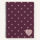 Pink hearts form a polka dot pattern on a rich port wine background. Hiding inside some of the hearts is a gold star with an emulated metallic shine, creating a playful and cute design. Customise the monogram on this notebook to make it instantly recognisable for your busy days at school, work, or whenever you might need to write some things down.