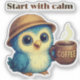 Begin your day with peace and positivity! This adorable blue owl holding a coffee mug with the word "COFFEE" brings you the sweet reminder: “Start with calm.”