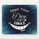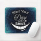 Start Your Day with a Smile, white text design on blue, mouse pad.