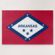This design features the flag of Arkansas, which is a state in the south central region of the United States. The state's diverse geography ranges from the mountainous regions of the Ozark and the Ouachita Mountains, which make up the U.S. Interior Highlands, to the densely forested land in the south known as the Arkansas Timberlands, to the eastern lowlands along the Mississippi River and the Arkansas Delta. The capital and largest city of Arkansas is Little Rock. The nickname of Arkansas is the "Natural State", but it used to be known as the "Bear State". The flag of Arkansas consists of a large blue-bordered white lozenge or diamond on a red background; the name of the state is inscribed in the centre.