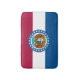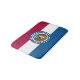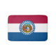 This design features the flag of Missouri, which is a state in the Midwestern United States. Missouri is bordered by eight states (tied for the most with Tennessee): Iowa to the north, Illinois, Kentucky and Tennessee (via the Mississippi River) to the east, Arkansas to the south and Oklahoma, Kansas and Nebraska to the west. In the south are the Ozarks, a forested highland, providing timber, minerals and recreation. The Missouri River, after which the state is named, flows through the center of the state into the Mississippi River, which makes up Missouri's eastern border. The capital of Missouri is Jefferson City, while the largest city in Missouri is Kansas City; other major cities in Missouri are St. Louis, Springfield, Columbia, Independence, Lee's Summit, O'Fallon, St. Joseph, St. Charles and St. Peters.