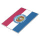 This design features the flag of Missouri, which is a state in the Midwestern United States. Missouri is bordered by eight states (tied for the most with Tennessee): Iowa to the north, Illinois, Kentucky and Tennessee (via the Mississippi River) to the east, Arkansas to the south and Oklahoma, Kansas and Nebraska to the west. In the south are the Ozarks, a forested highland, providing timber, minerals and recreation. The Missouri River, after which the state is named, flows through the centre of the state into the Mississippi River, which makes up Missouri's eastern border. The capital of Missouri is Jefferson City, while the largest city in Missouri is Kansas City; other major cities in Missouri are St. Louis, Springfield, Columbia, Independence, Lee's Summit, O'Fallon, St. Joseph, St. Charles and St. Peters.