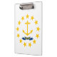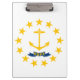 This design features the state flag of Rhode Island, which is a state in the New England region of the United States. The state takes its short name from Rhode Island (known also as Aquidneck Island); however, most of the state is located on the mainland. The state has land borders with Connecticut to the west, Massachusetts to the north and east, and the Atlantic Ocean to the south via Rhode Island Sound and Block Island Sound; it also shares a small maritime border with New York. Providence is the state capital and most populous city in Rhode Island. The official nickname of Rhode Island is the "Ocean State"; it is also sometimes known as "Little Rhody". The official motto of Rhode Island is "Hope". The flag of the state of Rhode Island consists of a gold anchor surrounded by thirteen gold stars (representing the original 13 colonies); a blue ribbon below the anchor bears the state's motto in gold.