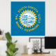 This design features the state flag of South Dakota, which is a U.S. state in the Midwestern region of the United States. It is named after the Lakota and Dakota Sioux Native American tribes, who comprise a large portion of the population and historically dominated the territory. As the southern part of the former Dakota Territory, South Dakota became a state on November 2, 1889, simultaneously with North Dakota. The state capital of South Dakota is Pierre, whereas Sioux Falls is the state's largest city. South Dakota is officially known as the Mount Rushmore State, because the colossal sculpture, a major tourist destination, is carved into the granite face of the Black Hills in Keystone, South Dakota.