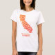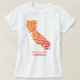 State of California Silhouette Hearts & Hometown T-Shirt - The iconic shape of California is filled with hearts of varying sizes. The colorway is of Reds and Oranges. Underneath the state outline is a place for your hometown. You can put any town in that spot -- perfect for those that never get to see their hometown on a map! Even the little unincorporated villages can be represented on your design. A great shirt to show your pride and love for the state you were raised in, live in or just love.