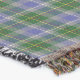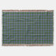 Throw blanket with the state of Connecticut tartan, from 1995. Traditional plaid pattern in shades of blue, green, and grey with yellow and red highlights.