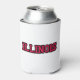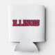 This custom can cooler features a design that displays the word "Illinois" in a Kompot Slab print font with red letters black outline in this custom state pride jersey style theme. Our can coolers fits any standard 12 oz cans and is customised on all sides including the bottom and made with high-density open-cell polyurethane collapsible foam material for easy storage.