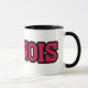This custom coffee mug features a design that displays the word "Illinois" in a Kompot Slab print font with red letters black outline in this custom state pride jersey style theme. The rim & handle are glazed in matching colours available in 11-ounce or 15-ounce sizes microwave and dishwasher safe ceramic construction.