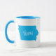 Show your home state pride with these t-shirts and other items that have a blue outline of the state of Iowa with the name inside the shape.