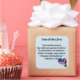 The size is perfect and the design has a softness with the beautiful flowers around the edges. The black lettering on the white background is sharp. It stands out beautifully. I love the Mixture of font styles as it catches the eye.