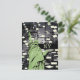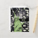 Statue of Liberty on graphic grey and yellow background, with the letters NY