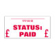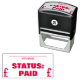 This rubber stamp design features the messages "STATUS: PAID", along with a pound sign symbol and a line where a payment date could be written. It could be used to mark an invoice or bill as having been paid in full.