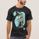 I give wanted to give this a 4 instead of a 5 because these Basic DARK T0shirts run unexpectedly SLIM or Narrow. Which is great if you do not have a potbelly, but I have a paunch. It isn't the shirt's fault that I've got a beer belly. The design and shirt itself is a quality cotton shirt. The color is more of a deep purple, but still a very pretty color. The Basic DARK T-shirts run a bit SLIMMER than the Basic Ts. The neck is a fraction narrower (or seems to be narrower) also. I'm a paunchy middle-aged woman and my neck is 12 inches (31cm) thick and the neckline fell about the same as in the photo of the man, and I had the desire to tug it a bit. So if you're a thick necked man or like loose shirts, be aware these are slimmer shirts. Once I get rid of my lockdown paunch it'll look great. The shirt washed well in cold water with no apparent bleeding. We don't have a dryer, so it hung dry. Did not shrink. Love the colors and the design. The design looks smaller on my shirt than it does on the model on-line. But still, it looks good on the shirt. The printing looks as it does on the model, just the size seems fractionally smaller. Washed garment in cold water, hung dry and design appeared unaffected.